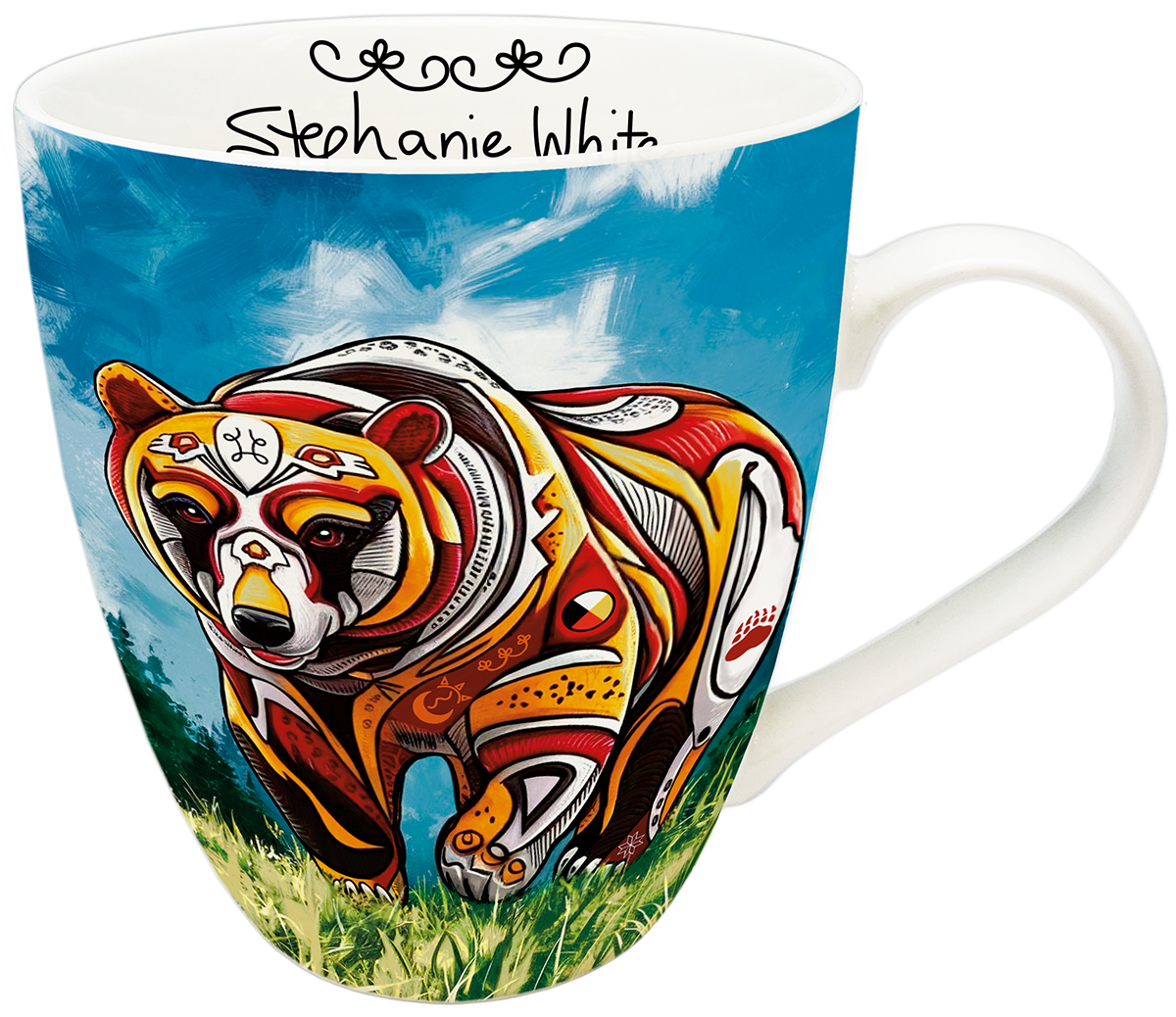Spirit Bear mug by artist Stephanie White. Her cultural background is Mi’kmaq, Qalipu Band, Newfoundland and Labrador. The artist is paid a royalty on every sale.